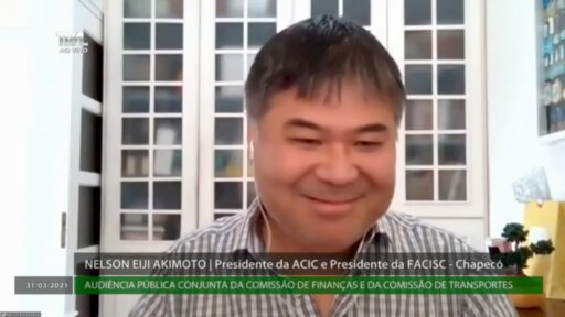 O presidente da Associação Comercial e Industrial de Chapecó (ACIC), Nelson Eiji Akimoto, participou nesta quarta-feira (31) de audiência pública virtual promovida pelas comissões de Finanças e Tributação e de Transportes e Desenvolvimento Urbano da Assembleia Legislativa de Santa Catarina (Alesc). O evento teve como pauta a suspensão dos voos diretos entre Chapecó e Florianópolis pela companhia aérea Azul desde o dia 20 de março.