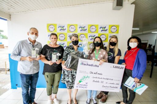Foi realizado na tarde da última sexta-feira, 04/12, na Escola Santa Julia Billiart a entrega do prêmio referente a 14º Edição do Concurso de Redação do Consórcio Machadinho para a aluna Graziéle Eduarda Konecheff de Paulo, com a presença do Vice Prefeito, Gilmar Marco Pereira; da Diretora da Escola, Caroline M. Wagner de Oliveira e da Professora Sueli de Godoi.