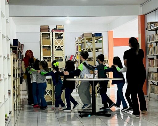ALUNOS PARTICIPAM DE 'CONTAÇÃO DE HISTÓRIA' NA BIBLIOTECA PÚBLICA MUNICIPAL PREFEITO LUIZ BAZZO