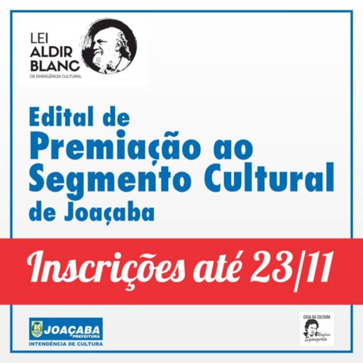 Por meio do Edital de Premiação ao Segmento Cultural de Joaçaba serão destinados 96 mil reais em prêmios para Música, Dança, Artes Cênicas, Artes Populares, Artes Visuais e Literatura, Livro e Leitura. Podem se inscrever qualquer artista ou trabalhador do setor cultural, domiciliado em Joaçaba.