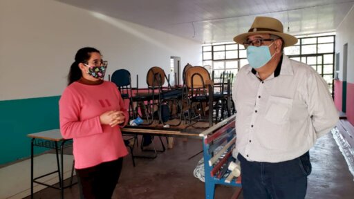 O prefeito Olmir Paulinho Benjamini ( Bile), visitou no fim de semana, as obras da Escola Reunida Zonalta, que passa por reformas em diversos pontos do prédio. Acompanhado do secretário de Cidade, Joelson Medeiros, Bile foi recebido na unidade pela diretora Simone Thomé Regalin.