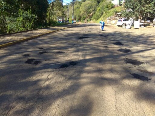 Tapa-buracos ao longo do trajeto entre a região da comunidade de Linha Serraria e as imediações do antigo frigorífico, foi adotado como medida paliativa para conter formação de panelas na rodovia.