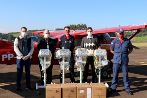 Na tarde desta sexta-feira, 15, pousou no aeroporto municipal o avião do Corpo de Bombeiros de Santa Catarina, com uma carga de quatro respiradores e monitores que foram entregues ao Hospital São Francisco - HSF de Concórdia. Os equipamentos, enviados pelo governo do Estado, são para o atendimento de pacientes com cononavírus. Com a chegada dos respiradores, os leitos de Unidade de Terapia Intensiva - UTI, serão ampliados dos atuais 16, para 20 leitos.