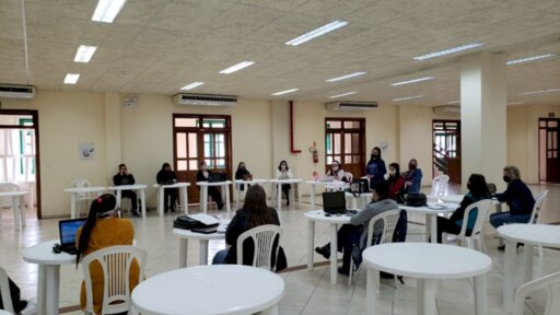 De acordo com a professora Márcia Fabrin, que é diretora da instituição, além de dividir as temáticas em grupos separados para evitar aglomerações, a equipe gestora optou pela realização do encontro na praça de alimentação do Centreventos, espaço amplo e arejado, o que reduziu o contato entre os profissionais.