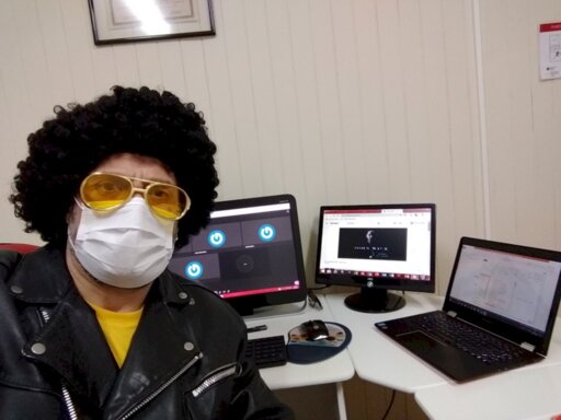 Em uma das aulas da 7ª fase do curso de Direito, no dia de uma revisão de assuntos e de aplicar exercícios para a fixação dos conteúdos, os alunos foram surpreendidos. Ao ligar o computador, encontraram o professor usando uma máscara descartável (fazendo alusão à necessidade desse tipo de proteção durante a pandemia), peruca e óculos de plástico. No ambiente, uma trilha sonora. Isso tudo com o objetivo de chamar a atenção do acadêmico demonstrando que aquele seria um momento de divertido de aprendizado. Na sequência, a aposta na tecnologia, com a utilização das ferramentas on-line disponibilizadas pela Unoesc, materiais demonstrados em programas utilizados pelo professor e a aplicação de testes rápidos, tudo via webconferência, tiveram como resultado a participação maciça dos acadêmicos. Ao final, os parabéns para todos que participaram e um ponto a mais para a internet, que tem sido capaz de proporcionar muita interatividade.