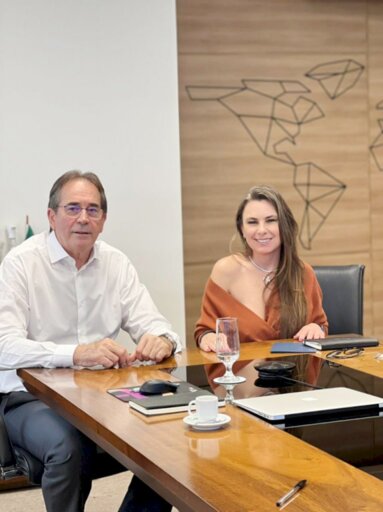 Deputada e pré- candidata Paulinha faz visita institucional ao presidente da FIESC Mario Cezar de Aguiar