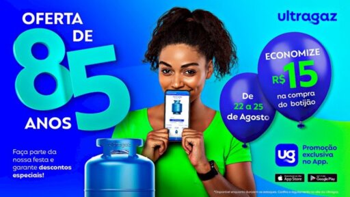 São Paulo, 19 de agosto de 2022 - No mês de agosto, a Ultragaz comemora seus 85 anos. Para celebrar, a companhia, que atua com soluções em energia para negócios e domicílios de forma segura, eficiente e sustentável, vai realizar uma promoção especial entre os dias 22 e 25 de agosto.