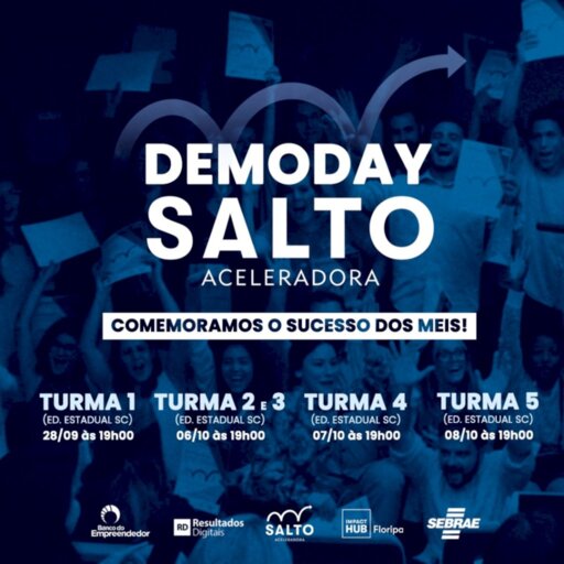 Desde a última semana, o programa Salto Aceleradora de MEIs encerra a jornada das turmas estaduais com uma grande comemoração. Os Demodays, como são chamados esses eventos de encerramento no universo empreendedor, serão transmitidos ao vivo pelo Youtube no canal do Impact Hub Floripa e terão interações com a participação da equipe, de parceiros, dos participantes e apoiadores. "Olhando para essa realidade, o nosso propósito é ajudar os microempreendedores a manterem seus negócios de forma saudável, com uma jornada de conhecimento e desenvolvimento que realmente faz a diferença na vida dos participantes", conta Maíra Rodrigues, sócia do Impact Hub Floripa e criadora da metodologia Salto.