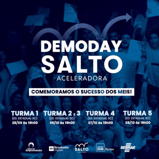 Desde a última semana, o programa Salto Aceleradora de MEIs encerra a jornada das turmas estaduais com uma grande comemoração. Os Demodays, como são chamados esses eventos de encerramento no universo empreendedor, serão transmitidos ao vivo pelo Youtube no canal do Impact Hub Floripa e terão interações com a participação da equipe, de parceiros, dos participantes e apoiadores. "Olhando para essa realidade, o nosso propósito é ajudar os microempreendedores a manterem seus negócios de forma saudável, com uma jornada de conhecimento e desenvolvimento que realmente faz a diferença na vida dos participantes", conta a sócia do Impact Hub Floripa e criadora da metodologia Salto, Maíra Rodrigues.