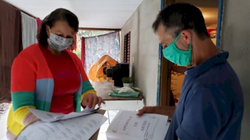 Usando máscara e seguindo recomendações de distanciamento, lá vai a professora Eni Martinazzo, para mais uma visita domiciliar aos pais de estudantes sem contato com o ambiente virtual. A visita da semana da diretora da Escola Marechal Câmara, que funciona do distrito de Uruguai, interior de Piratuba, é à família Costa. Seu Amarildo Costa, mora na própria vila. O trabalhador, tem dois filhos matriculados na unidade de ensino. O menino David de 05 anos e a garota Estela de 06 anos, passam a maior parte do tempo com os avós e não tem acesso à internet.