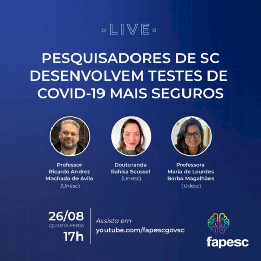 Participam da live o professor Ricardo Andrez Machado de Avila e a doutoranda Rahisa Scussel, da Unesc, que estão desenvolvendo uma nova tecnologia a partir de nanomateriais magnéticos. Até o fim do ano, eles pretendem ter um teste rápido mais seguro e um teste sorológico mais barato. A pesquisa contou com R$ 100 mil da Fapesc, recurso usado para a compra de materiais para as análises.