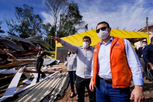 "Nós temos termos de referências para a aquisição de materiais. Esse primeiro contato é para fornecer a assistência básica, como cestas básicas, lonas e telhas, para socorrer as pessoas. A partir de sábado, o material, como telhas, começa a chegar. Quando o evento é extenso, muitas vezes você não consegue adquirir o material na própria região. Com o tempo, outras intervenções mais adequadas poderão ser feitas", disse o governador.