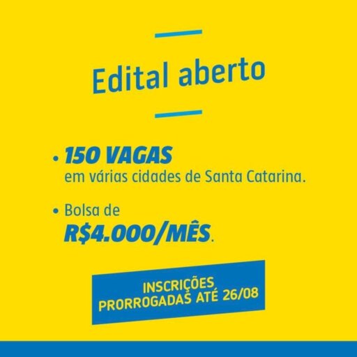 Inscreva-se para o edital de seleção do Programa ALI em Santa Catarina! Os selecionados atenderão pequenos negócios catarinenses na implementação de soluções inovadoras. No total, são 150 vagas oferecidas para profissionais com curso superior, 100 são para contratação imediata e 50 para cadastro de reserva. Os selecionados receberão bolsas de R$ 4 mil. As vagas abertas são para mais de 40 cidades. A taxa de inscrição é de R$ 80,00 para Orientadores e R$ 40 para agentes.