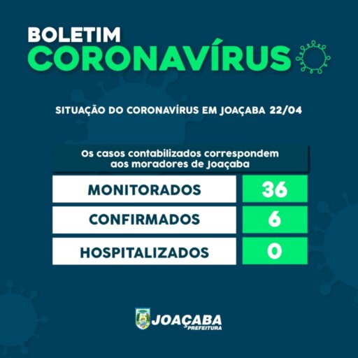 O Município de Joaçaba recebeu nesta quarta-feira (22) a confirmação de mais um caso de Coronavírus. Trata-se de um homem com faixa etária de 25 anos e 35 anos, que coletou o exame em um laboratório particular e testou positivo para o COVID -19. Até o momento, Joaçaba tem 6 casos confirmados, mas nenhum deles está hospitalizado e todos estão com quadro de saúde estável, em isolamento domiciliar.