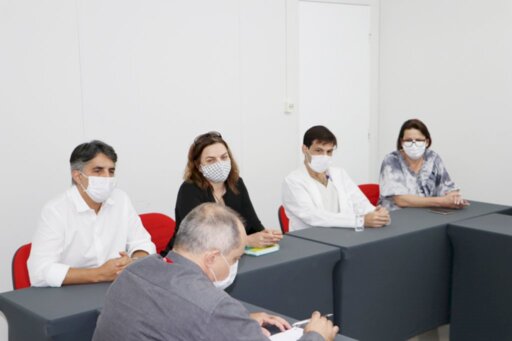 O prefeito Rogério Pacheco e as secretárias municipais de Saúde, Leide Mara Bender, e Administração Neiva Belusso Piola, se reuniram nesta manhã,11, com a direção administrativa e clínica do Hospital São Francisco. O prefeito buscou realizar esta reunião para saber da real situação em relação às internações por Covid, bem como, se colocar à disposição para auxiliar no que for necessário para que a instituição tenha condições de atender os concordienses.