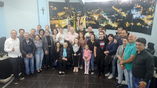 - Foto legenda: Familiares de José Bresola, moradores de São Roque e Vereadores depois da sessão registrando o feito: Aprovação do Projeto de Lei do Legislativo que denomina trecho que tem início no Trevo do Contorno Viário até a propriedade do Sr. Francisco Paggi (Chico).