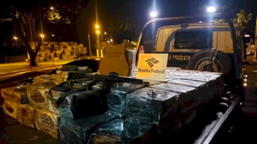 Após constatar informações desencontradas em relação a carga, os servidores da Receita Federal decidiram encaminhar o caminhão até a cidade de Londrina (PR), onde foi realizada a conferência encontrada, tendo sido localizada embaixo das sacas de farinha, aproximadamente 1.500 Kg de maconha, além de um fuzil de calibre 5.56 mm de origem americana e 46 munições do mesmo calibre.