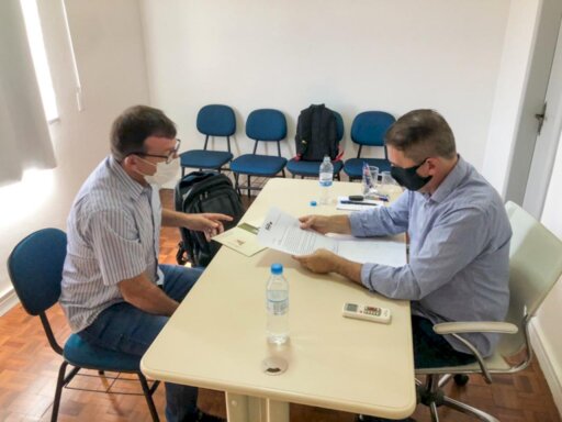 Ana Ceron / Assessoria de Imprensa / Secretaria de Estado da Agricultura, da Pesca e do Desenvolvime - A reunião aconteceu nesta segunda-feira (22) em Chapecó, com o secretário Altair Silva e o presidente da Associação Catarinense de Criadores de Suínos (ACCS), Losivanio de Lorenzi (Foto: Vinicius Eduardo Schneider).