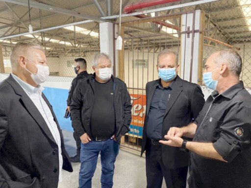 O empresário e deputado estadual Nilso Berlanda recebeu, n quarta-feira (20/01), em suas fábricas que funcionam dentro do Presídio Regional de Curitibanos, em São Cristóvão do Sul, o secretário da Administração Penitenciária do Distrito Federal, Agnaldo Curado. O secretário foi conhecer o funcionamento da penitenciária que tem 75% dos 920 detentos trabalhando para levar a expertise catarinense para o DF. Esse índice já chegou a 100% antes da pandemia do Coronavírus, que obrigou a redução de funcionários por fábrica dentro da penitenciária (mais nove empresas privadas e quatro públicas estão instaladas lá).