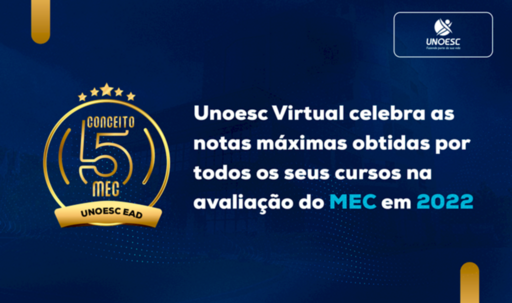 Unoesc Virtual celebra as notas máximas obtidas por todos os seus cursos na avaliação do MEC em 2022