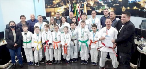 A moção foi entregue ao mestre Valdecir Saretta, que esteve representando a entidade na Câmara de Veadores com toda sua equipe e atletas.
