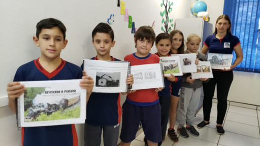 As histórias da colonização de Piratuba e o desenvolvimento ferroviário. Páginas da linha da vida, misturadas ao cotidiano de estudantes da Escola Professor Rodolfo Holeveger, da comunidade de Lageado Mariano, no interior de Piratuba.