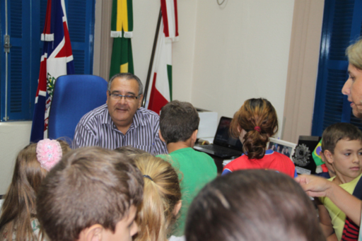 As crianças fizeram várias perguntas pertinentes ao assunto. Na sala do Prefeito Bile Benjamini, elas quiseram saber mais sobre o trabalho do Gestor do Município nas áreas da Educação, Esportes e geração de empregos, entre outros temas. O prefeito Bile disse que a Educação é prioridade da sua Administração e explicou que, em Piratuba, os investimentos na área educacional são maiores do que os exigidos por lei (que é de 25% da arrecadação do Município). De uma forma simples, para que as crianças pudessem entender como funcionam os investimentos, o prefeito contou que a cada R$ 100,00 arrecadados, R$ 34,00 são gastos para melhorias na Educação, como por exemplo, com a manutenção das escolas, pagamento dos salários de professores e funcionários, compra de uniformes, material escolar e merenda.