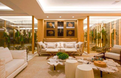 Outro destaque do projeto é o paisagismo criado por Leda Jafet, que humaniza o espaço. Os jardins, todos internos, foram elaborados com pedras e lindas orquídeas. Já a iluminação, de automação fornecida pela Cyntron, foi metodicamente estudada para transmitir uma sensação de romance praiano. Para finalizar, uma curadoria com peças especiais de marcas como Saccaro, Casual Móveis e Artefacto completam o ambiente.