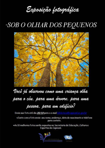 Você já observou como uma criança olha para o céu, para uma árvore, para uma pessoa, para um edifício? A Secretaria da Educação de Capinzal em parceria com a Diretoria de Cultura e a Biblioteca Municipal quer saber por meio da exposição "Sob o olhar dos pequenos".
