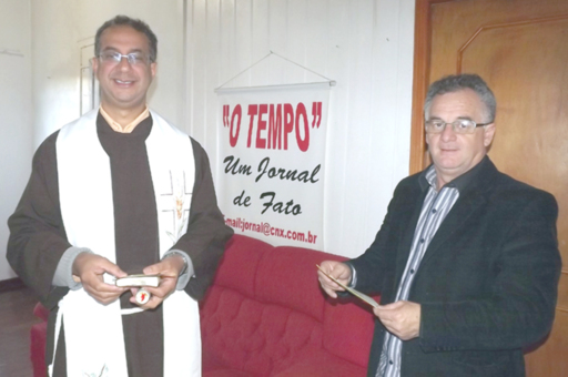 Bodas de prata de O TEMPO ? um jornal de fato comemorado com bênção dada pelo Frei Antônio ? da Paróquia São Paulo Apóstolo de Capinzal