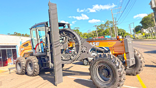 Nova motoniveladora adquirida está no pátio da Secretaria de Infraestrutura de Capinzal, pronta para reforçar os trabalhos no município.