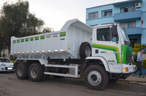 O Caminhão basculante foi doado pelo Ministério do Desenvolvimento Agrário (MDA) e em breve estará à disposição das Secretarias da Infraestrutura e da Agricultura e Meio Ambiente. O mesmo completa o kit do PAC 2 (Programa de Aceleração do Crescimento) que contemplou todos os municípios com uma retroescavadeira recebida em 2012, uma moto niveladora em 2013 e no último dia 20, em ato solene na cidade de Chapecó o Ministro do MDA Miguel Rosseto e a Ministra Ideli Salvatti entregaram 81 caminhões e dezenas de máquinas aos municípios que ainda não haviam recebido.
