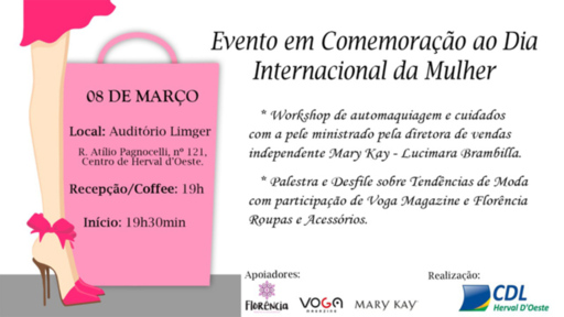 Para comemorar o Dia Internacional da Mulher, celebrado nesta sexta-feira, dia 8 de março, a Câmara de Dirigentes Lojistas (CDL) Herval d' Oeste promove um encontro diferenciado às mulheres, com troca de conhecimento e integração.