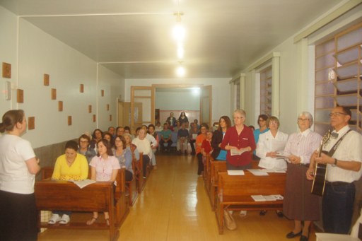 Foram exibidos slides marcando a presença das Irmãs Servas de Maria Reparadoras em Capinzal, marcando fatos que se sucederam a partir de 1947.