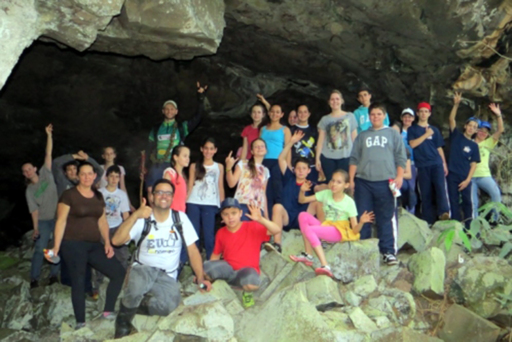 Escola Kleinübing (Haiala) e os alunos do Clubinho do Meio Ambiente num passeio nas cavernas do Avai