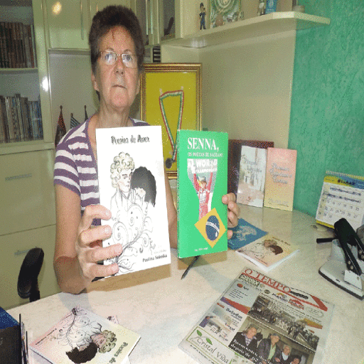 A capinzalense Paulina Sobotka recebeu a nossa Reportagem em sua residência, na biblioteca onde lê e escreve muito, sexta-feira, 12 de Setembro, onde nos mostrou os quatro livros em que participou de concursos, sendo realizados um em Santa Catarina e três fora do Estado, consequentemente seus descritos então no terceiro livro de sua autoria, denominado “Poesias de Amor”.