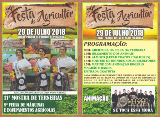 - Programação da Festa do Agricultor será concentrada no Parque de Eventos de Piratuba