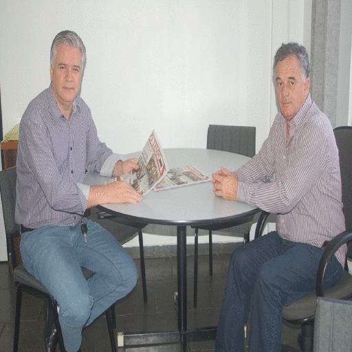 O capinzalense Vitorino Lanhi acompanhando Valduga que sempre marca presença em Capinzal e nos municípios vizinhos (Ouro, Campos Novos e outros), sendo os mesmos recepcionados na Redação de O TEMPO – um jornal de fato: diretor geral Enio. O. Azevedo..