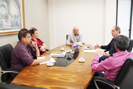 O professor Aristides Cimadon, Reitor da Unoesc, reuniu-se, nesta segunda-feira (8) com o Prefeito Municipal de Catanduvas, Dorival Ribeiro dos Santos, o Secretário de Saúde, Almir José Vicentine e a Secretária de Administração Lucimari Spader, juntamente com o Diretor Geral do Hospital Universitário Santa Terezinha (HUST), Alciomar Antonio Marin.