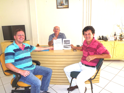 - Valcidnei Helt (idealizador da pretensão tombamento histórico da ponte Pênsil), jornalista Aldo Azevedo e o prefeito Neri Luiz Miqueloto.