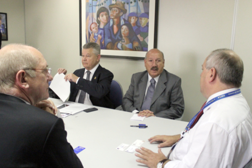 O senador Luiz Henrique (PMDB-SC) liderou a comitiva de autoridades que se reuniu na manhã desta terça-feira (13) com o diretor executivo de marketing da Caixa Econômica Federal, Claudir Luiz Santos. O objetivo do encontro foi solicitar patrocínio da Caixa para O Joinville Esporte Clube –JEC.