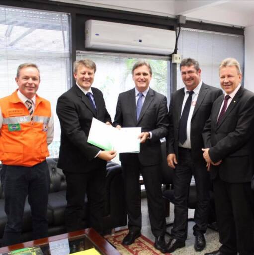 Em viagem à Brasília dos dias 02 a 04.10, o Prefeito Emerson Ari Reichert e o Vice Adilson Alfredo Schwingel estiveram em audiência junto ao Ministério da Integração Nacional para oficializar o repasse da última parcela valor de R$ 796.042,23, destinado à conclusão das obras de estabilização de encostas com a construção de um muro de contenção, no Bairro do Hospital.