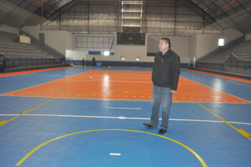 O prefeito Nelson Cruz esteve nesta manhã (23.09) conferindo os trabalhos que estão sendo executados no Ginásio Humberto Calgaro. No ginásio já foi colocado o novo piso, que se trata de um dos mais modernos do estado, do mesmo sistema utilizado em Jaraguá do Sul, onde grandes equipes treinam e realizam campeonatos.