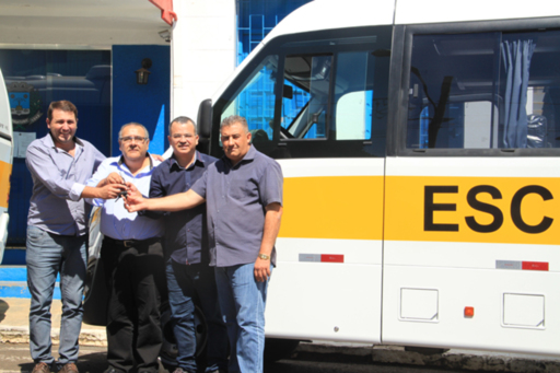 - Prefeito Bile Benjamini, Vice-Prefeito Evando de Azeredo e o responsável pelo Setor de Transporte Escolar da Prefeitura, José Celso da Silva recebem as chave do micro-ônibus