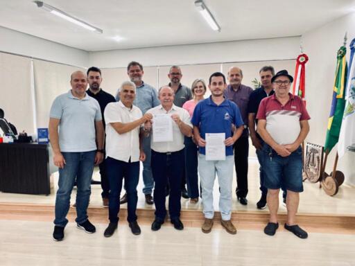 Aconteceu na manhã desta sexta-feira (2) a assinatura da ordem de serviço para pavimentação de seis ruas do Bairro Frei Bruno. A solenidade contou a presença do prefeito Dioclésio Ragnini, secretários municipais, vereadores, representante da AMMOC e o representante da empresa Empresa SRV Projetos é Construções LTDA, que venceu a licitação e irá executar a obra.