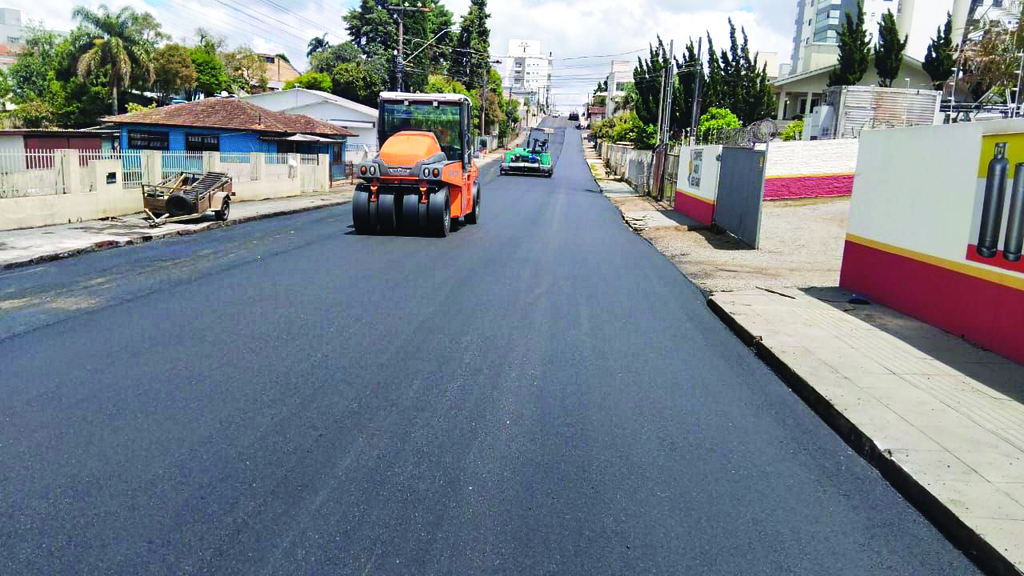 Rua 15 de Novembro está recebendo recapeamento asfáltico em Campos Novos |
