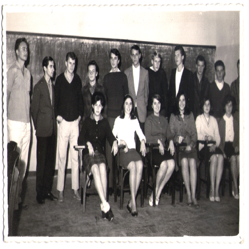 A foto é um registro do ano de 1969, sendo de alguns alunos e professores da Escola Técnica de Comércio Capinzal.