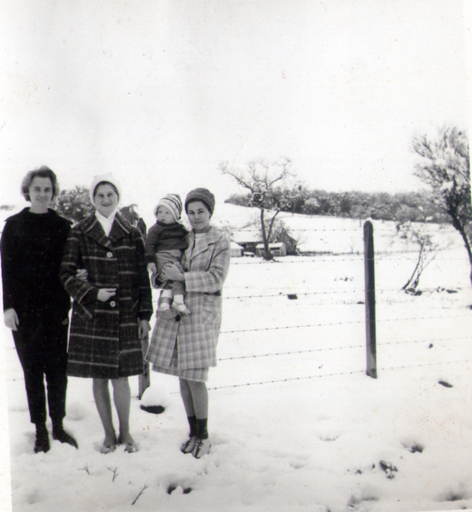 Da esquerda para a direita: Erci Hachmann Maestri, Lilian Clarice Hachmann e Teresinha Giumbelli segurando no colo Maria Elena Maestri.
