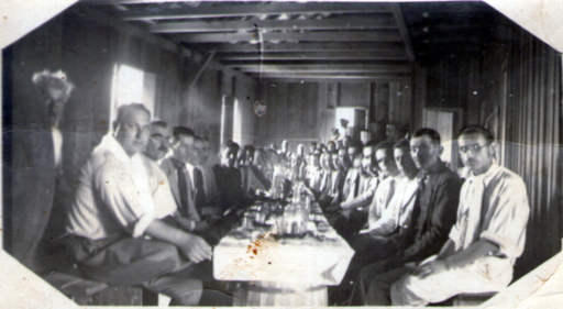 A foto é da década de 1940, sendo um registro de um encontro de associados das Indústrias Reunidas Ouro (frigorífico), da cidade de Capinzal (SC).
