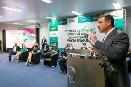 Para resolver o problema de abastecimento de água em Chapecó e municípios vizinhos, especialmente em períodos de estiagem, o governador Carlos Moisés entregou, por intermédio da Casan, a ordem de serviço que autoriza o início da construção da macroadutora do Rio Chapecozinho. O investimento total na obra será de R$ 195,7 milhões, com recursos do Estado. É a maior obra de sistema de abastecimento de água em Santa Catarina. O ato ocorreu em Chapecó na tarde desta quinta-feira, 3, quando ainda foram anunciados investimentos para Infraestrutura, Saúde e Segurança Pública.